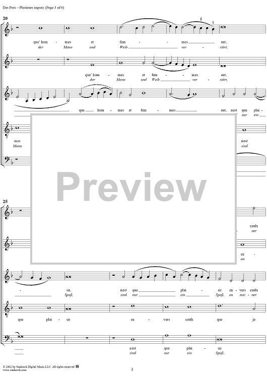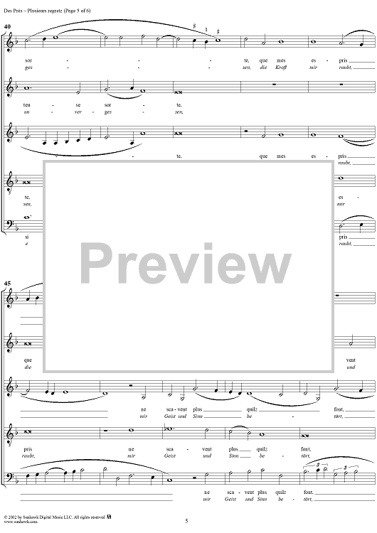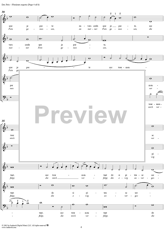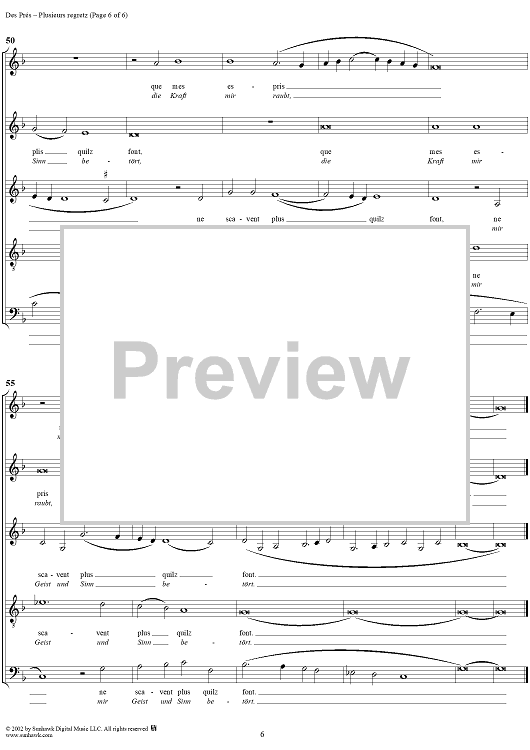 Digital Sheet Music for Weltliche Lieder 6 by Josquin Des Pres scored for Mixed Chorus; id:270486