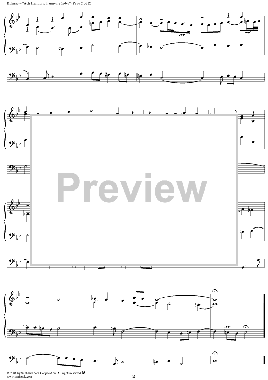 Digital Sheet Music for Ach Herr, mich armen Sünder (O Sacred Head, once wounded) by Johann Kuhnau scored for Organ Solo; id:253645