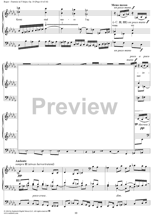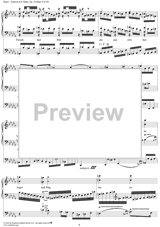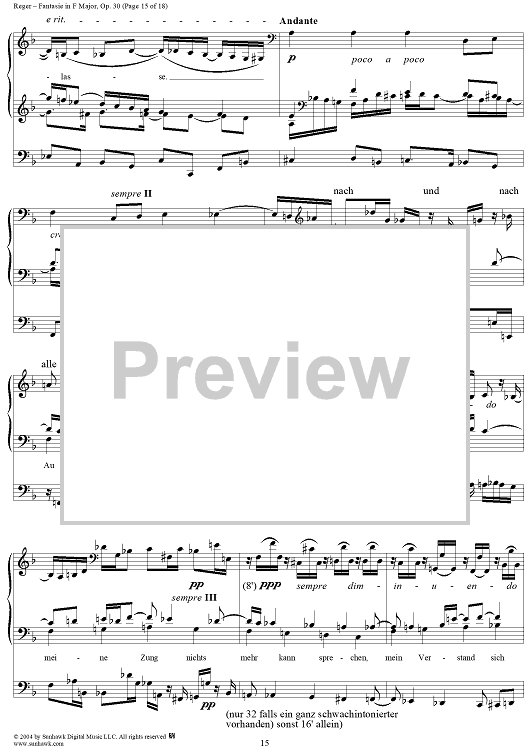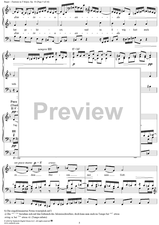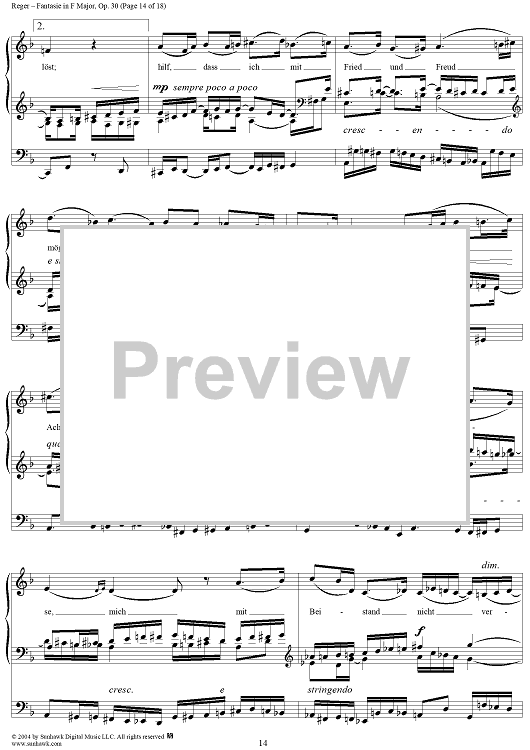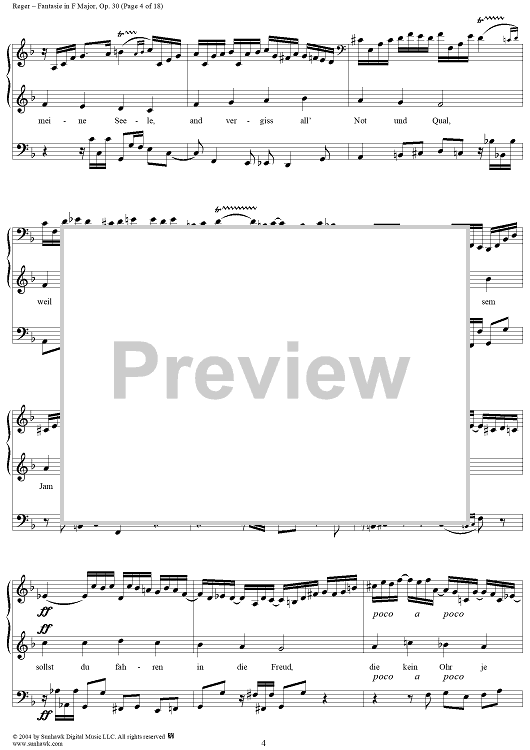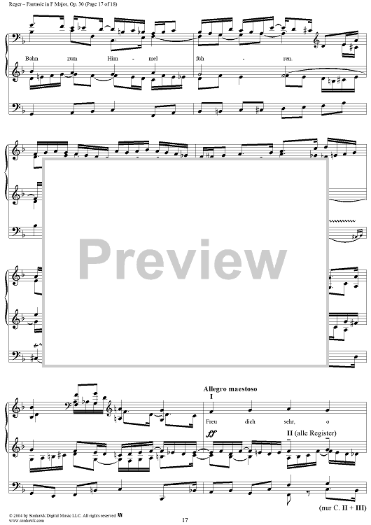 Digital Sheet Music for Fantasie in F Major, Op. 30 by Max Reger scored for Organ Solo; id:303077