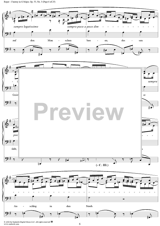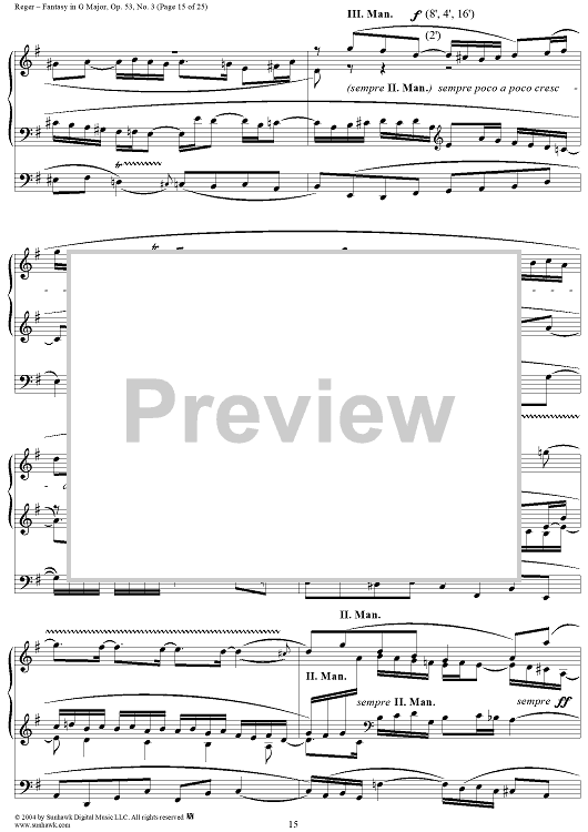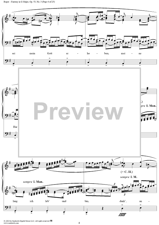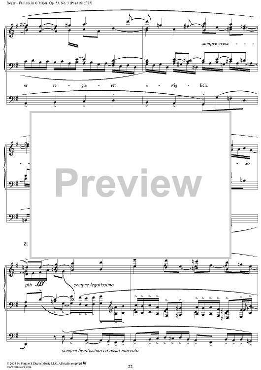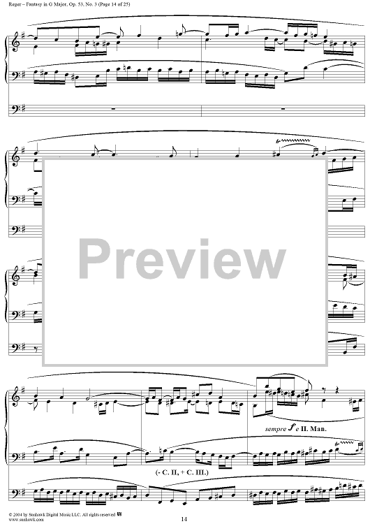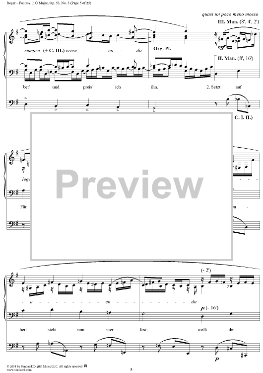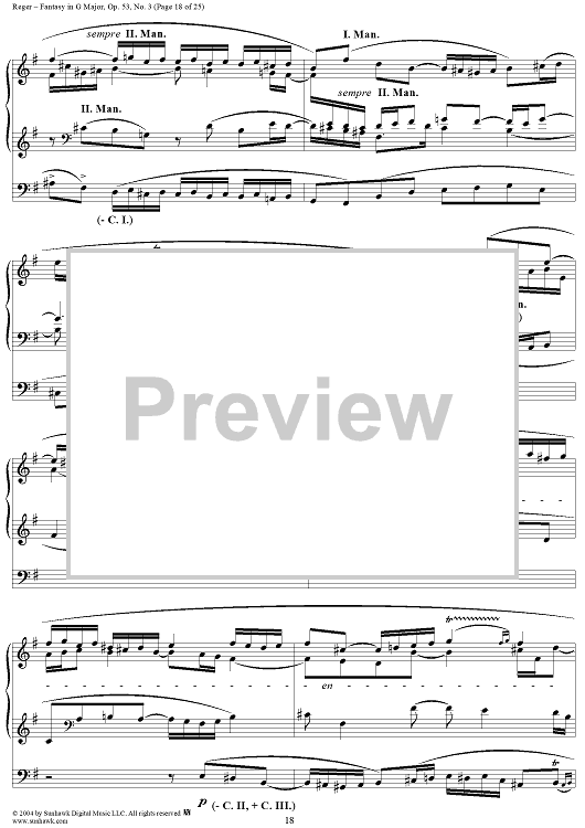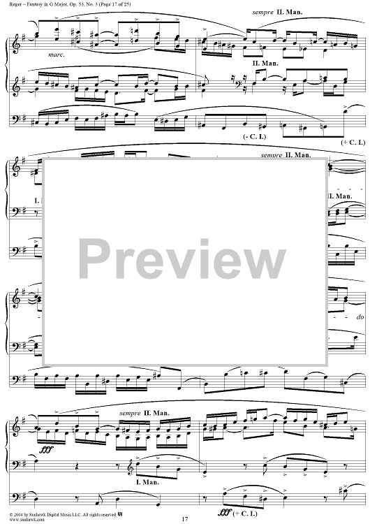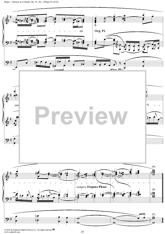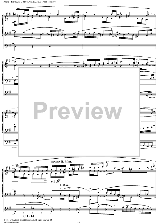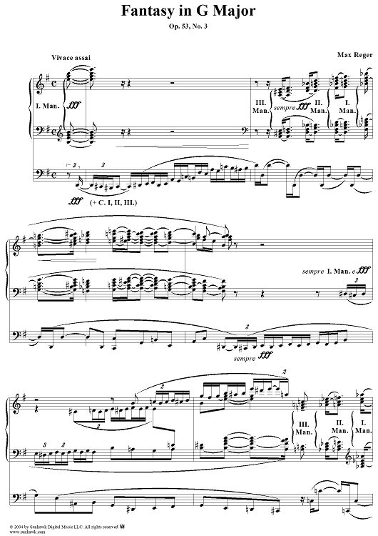 Digital Sheet Music for Fantasy in G Major, Op. 53, No. 3 by Max Reger scored for Organ Solo; id:303078