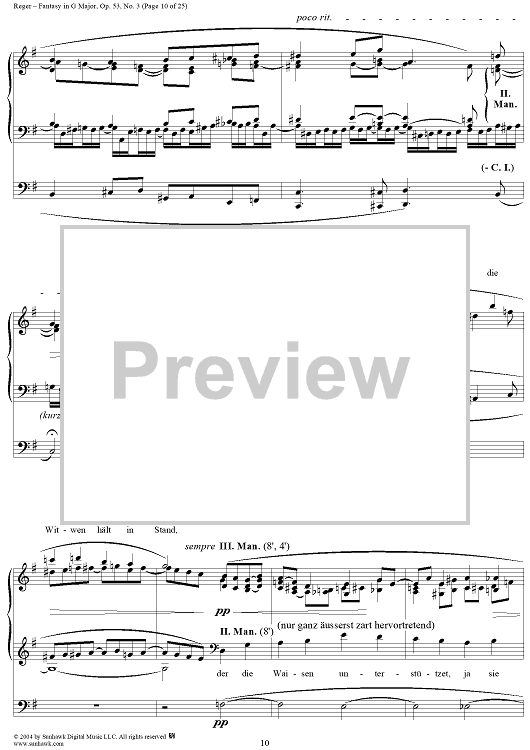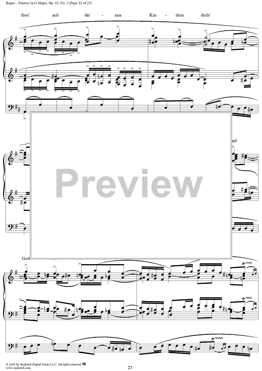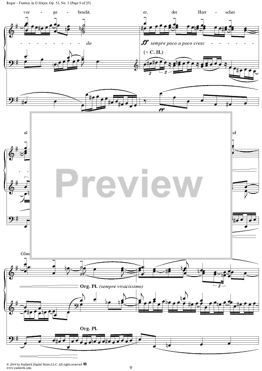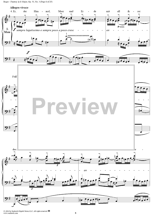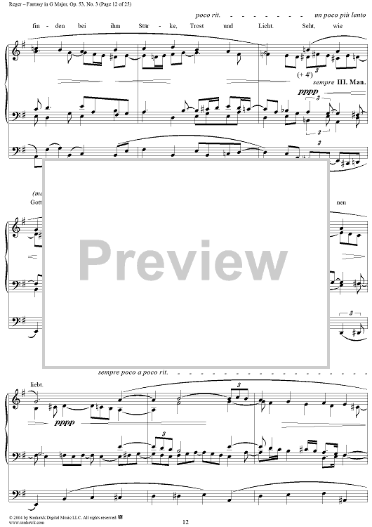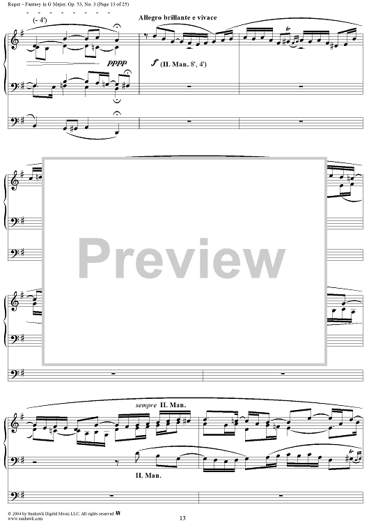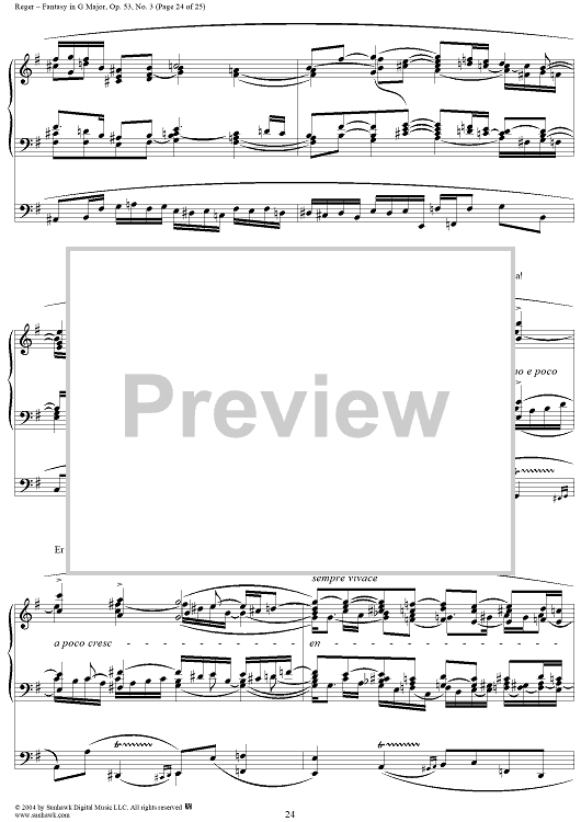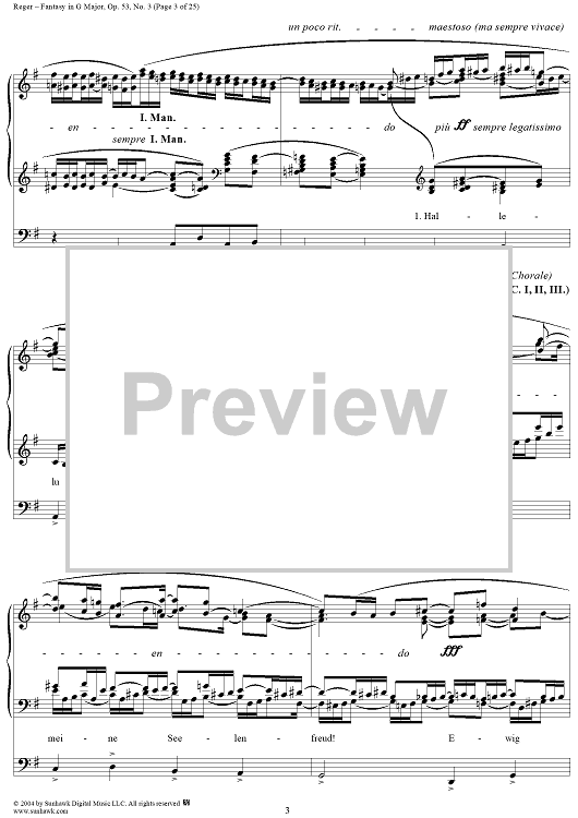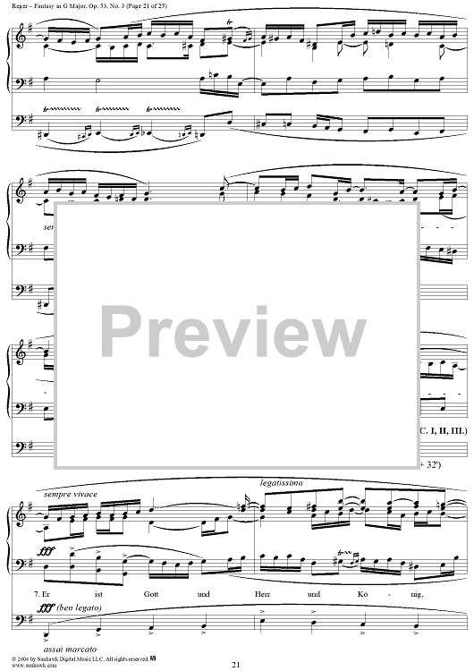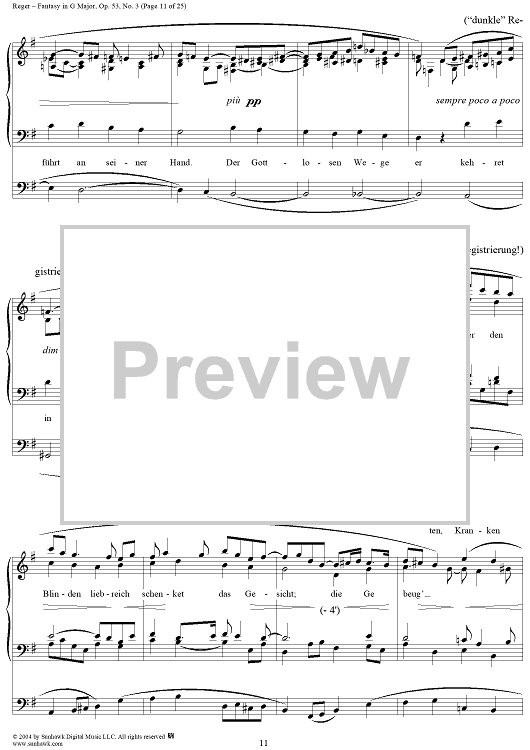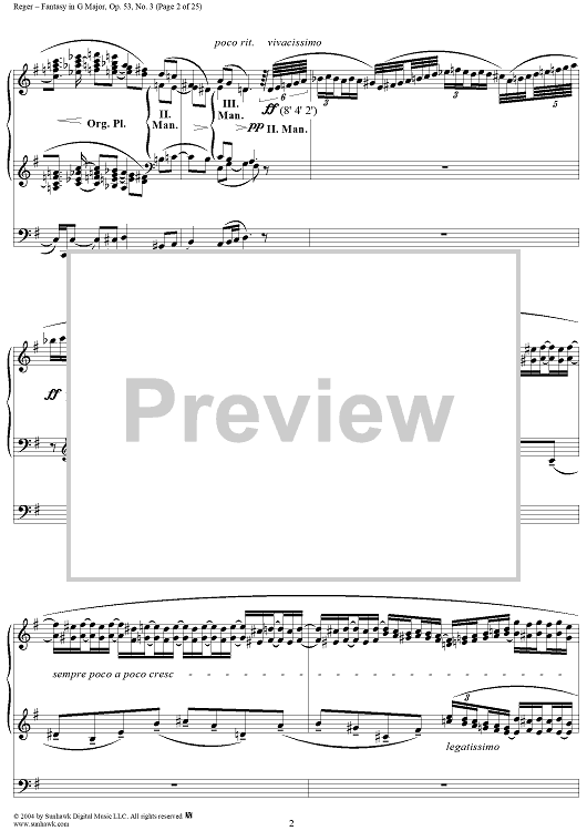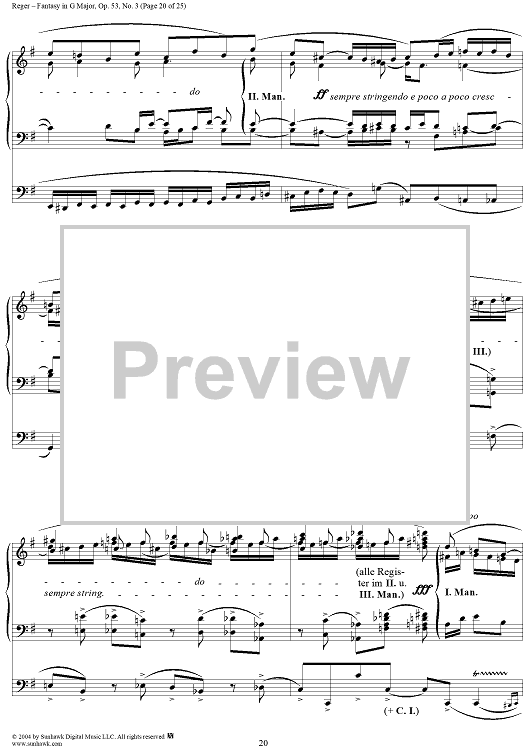 Digital Sheet Music for Fantasy in G Major, Op. 53, No. 3 by Max Reger scored for Organ Solo; id:303078