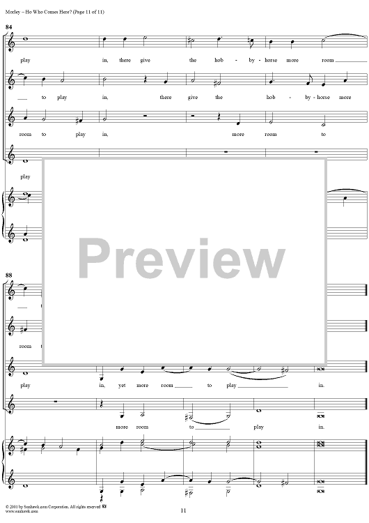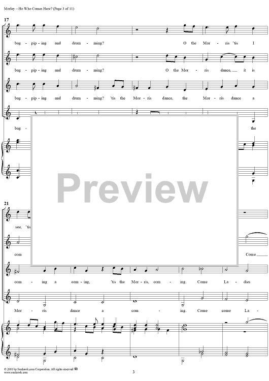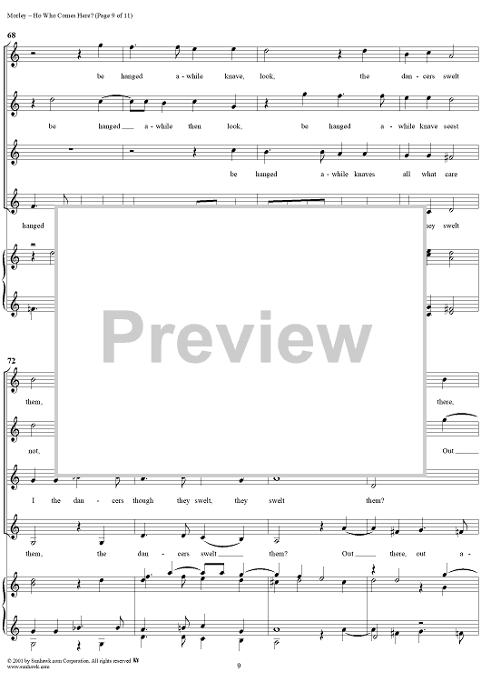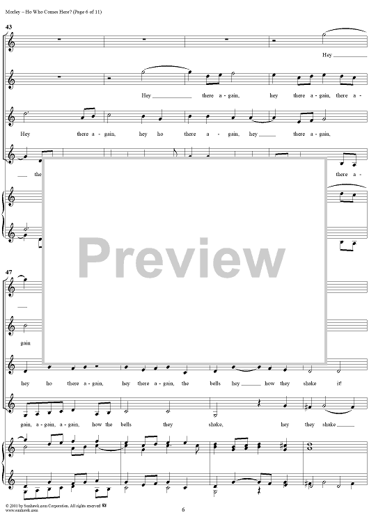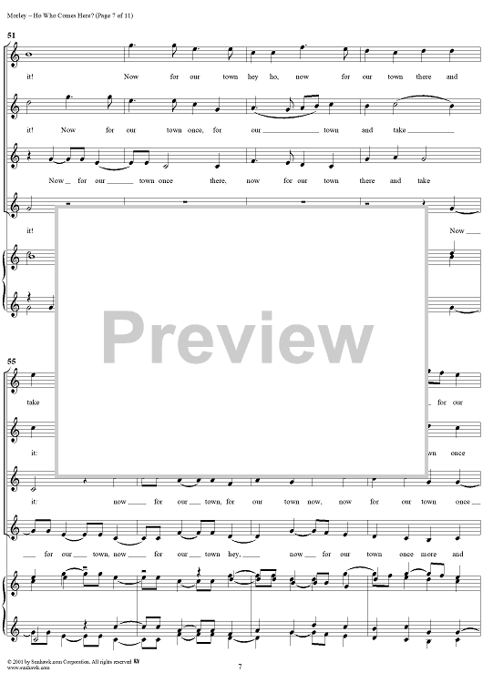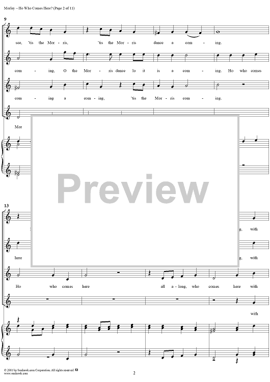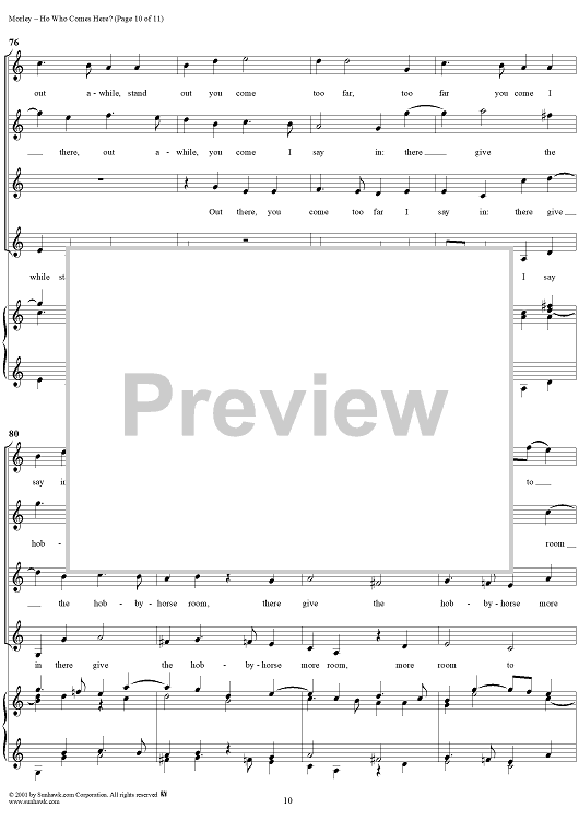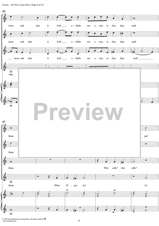 Digital Sheet Music for Ho Who Comes Here? by Thomas Morley scored for Four-part Mixed Chorus; id:260153