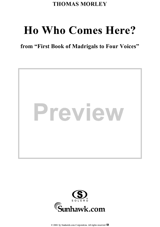 "Ho Who Comes Here?" Sheet Music by Thomas Morley