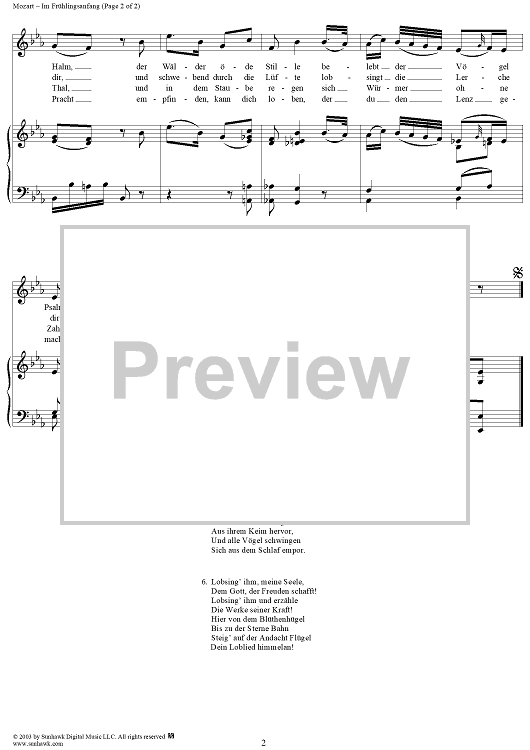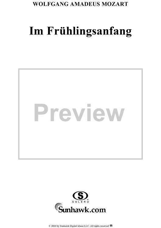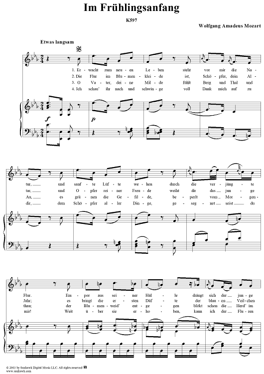 Digital Sheet Music for Im Frühlingsanfang, K597 by Wolfgang Amadeus Mozart, Chr. Chr. Sturm scored for Voice/Piano; id:291400
