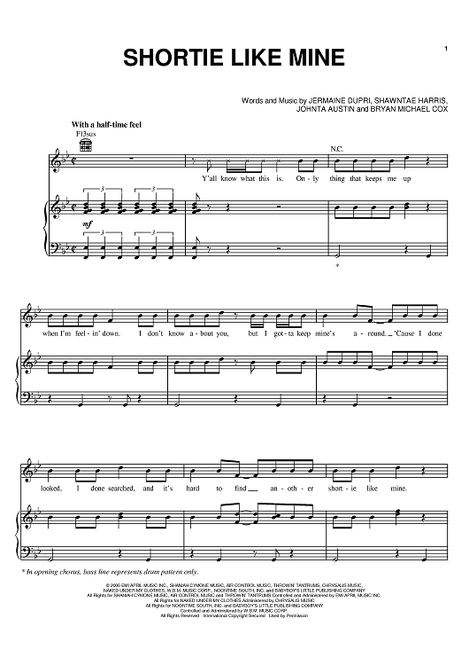 Digital Sheet Music for Shortie Like Mine by Jermaine Dupri, Bryan-Michael Cox, Chris Brown, Johnta Austin, Bow Wow, Da Brat scored for Piano/Vocal/Chords; id:394896