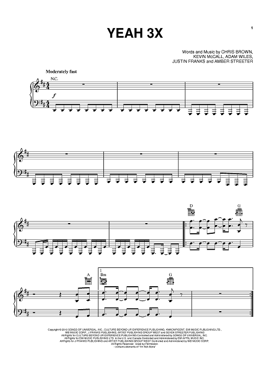 Digital Sheet Music for Yeah 3X by Chris Brown, Justin Franks, Kevin McCall, Adam Wiles, Amber Streeter scored for Piano/Vocal/Chords; id:428741