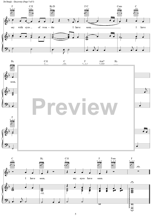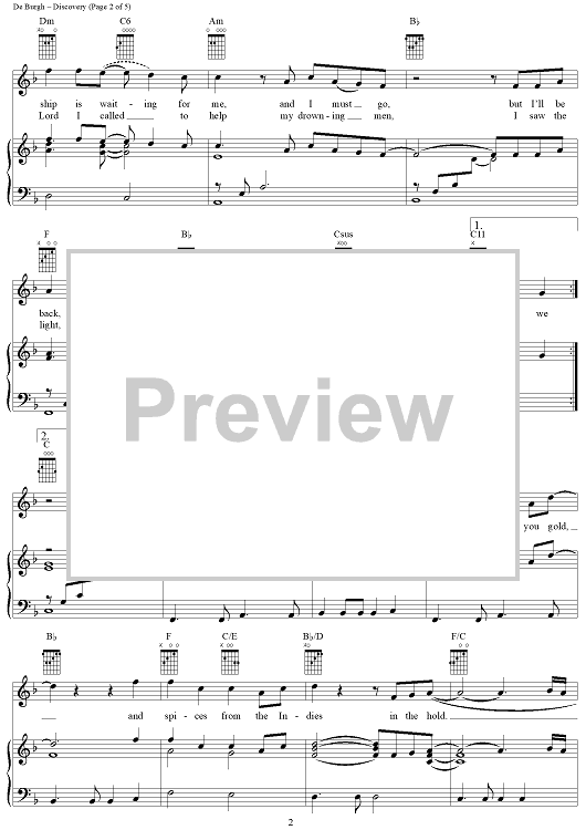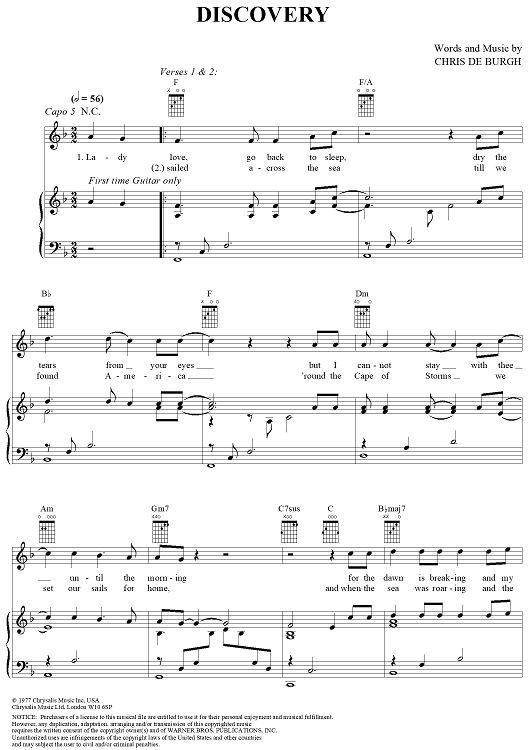Digital Sheet Music for Discovery by Chris de Burgh scored for Piano/Vocal/Chords; id:271463