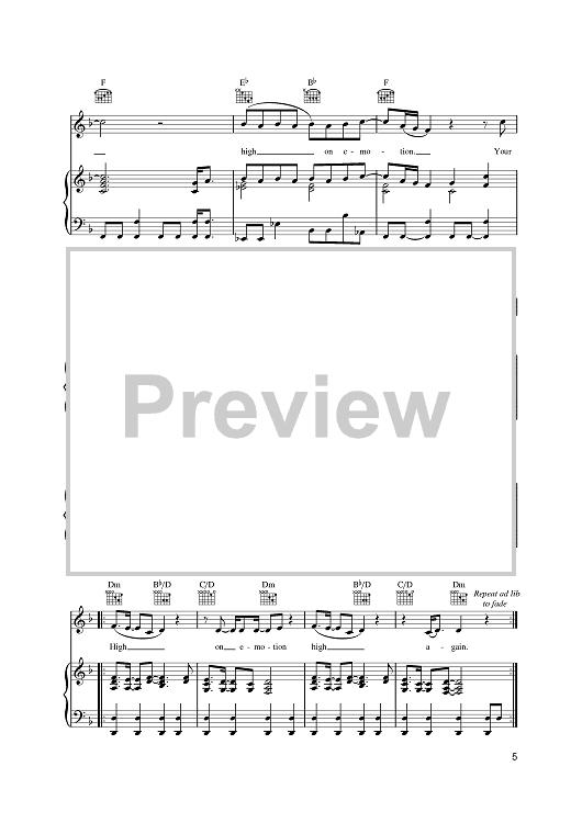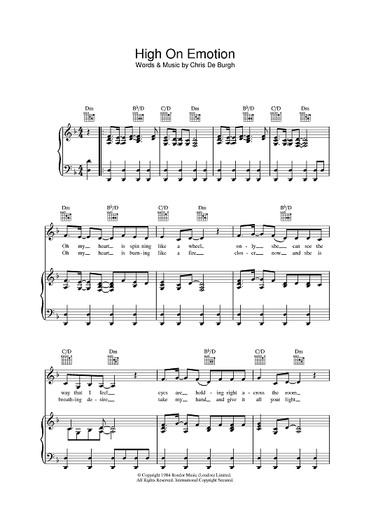 Digital Sheet Music for High On Emotion by Chris de Burgh scored for Piano/Vocal/Chords; id:391436