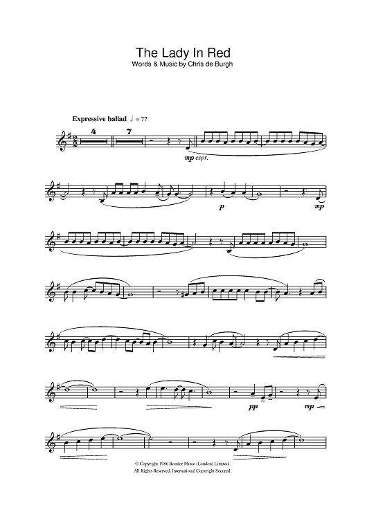 Digital Sheet Music for Lady In Red by Chris de Burgh scored for Lead Sheet; id:387577