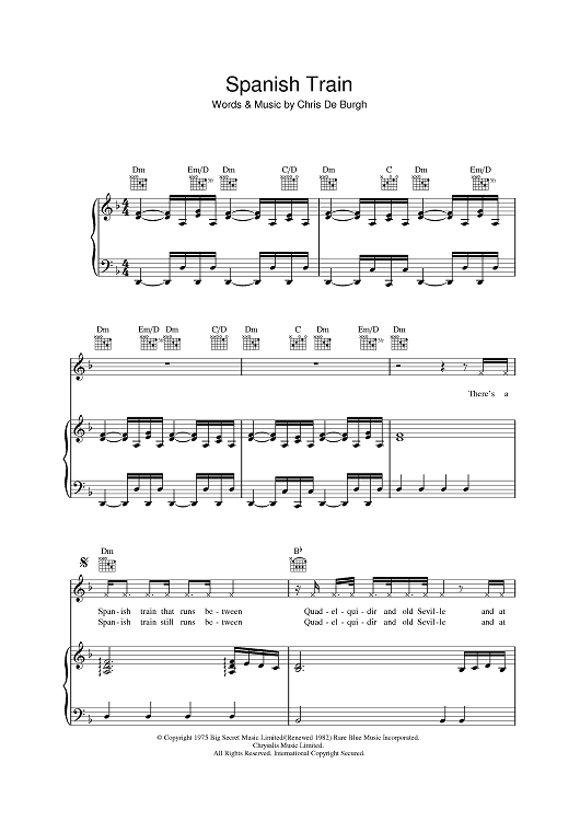 Digital Sheet Music for Spanish Train by Chris de Burgh scored for Piano/Vocal/Chords; id:391434