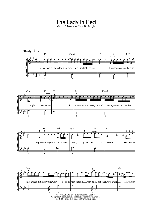 Digital Sheet Music for The Lady In Red by Chris de Burgh scored for Piano/Vocal/Chords; id:395690