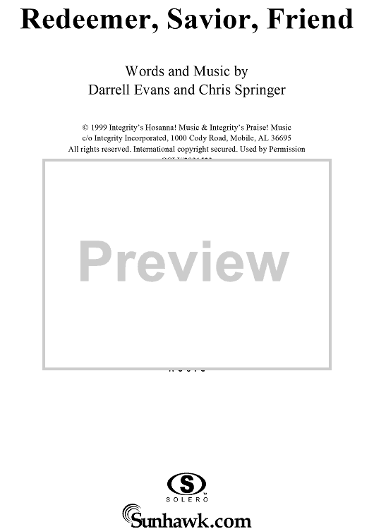 "Redeemer, Savior, Friend" Sheet Music by Darrell Wayne Evans