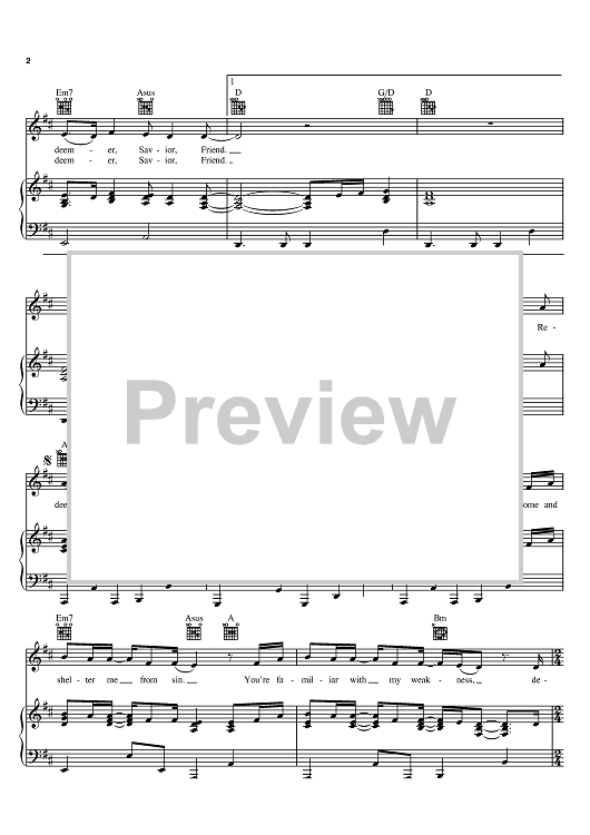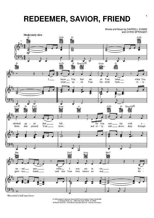 Digital Sheet Music for Redeemer, Savior, Friend by Darrell Wayne Evans, Chris Springer scored for Piano/Vocal/Chords; id:395013