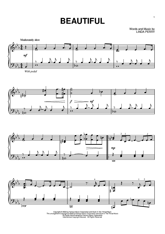 Digital Sheet Music for Beautiful by Linda Perry, Christina Aguilera scored for Piano; id:389396