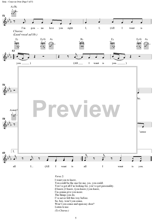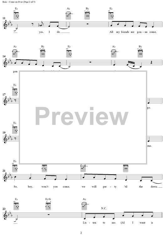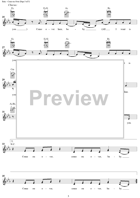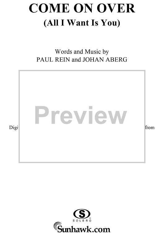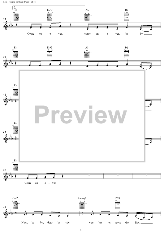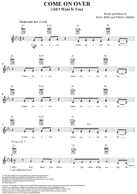 Digital Sheet Music for Come On Over (All I Want Is You) by Paul Rein, Johan Aberg, Christina Aguilera scored for Easy Guitar/Vocal; id:285741