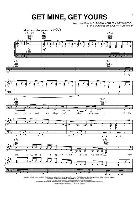 "Get Mine, Get Yours" Sheet Music by Christina Aguilera