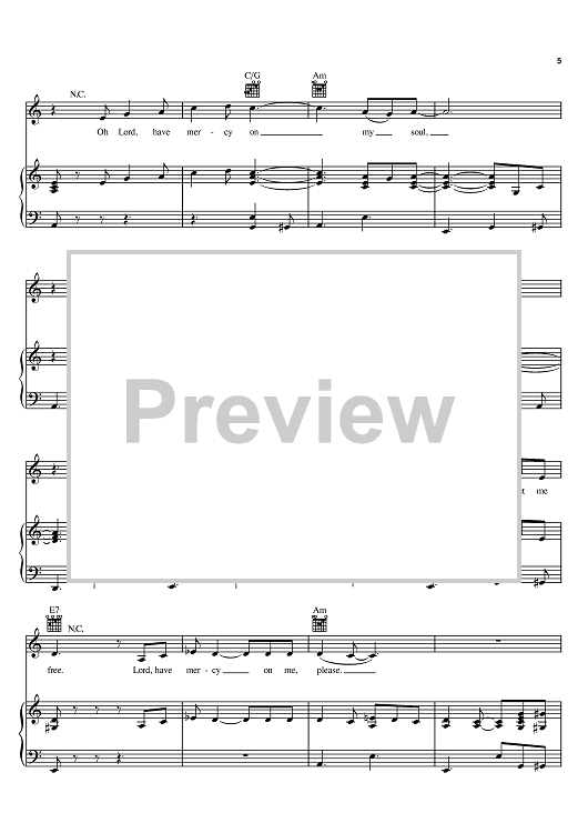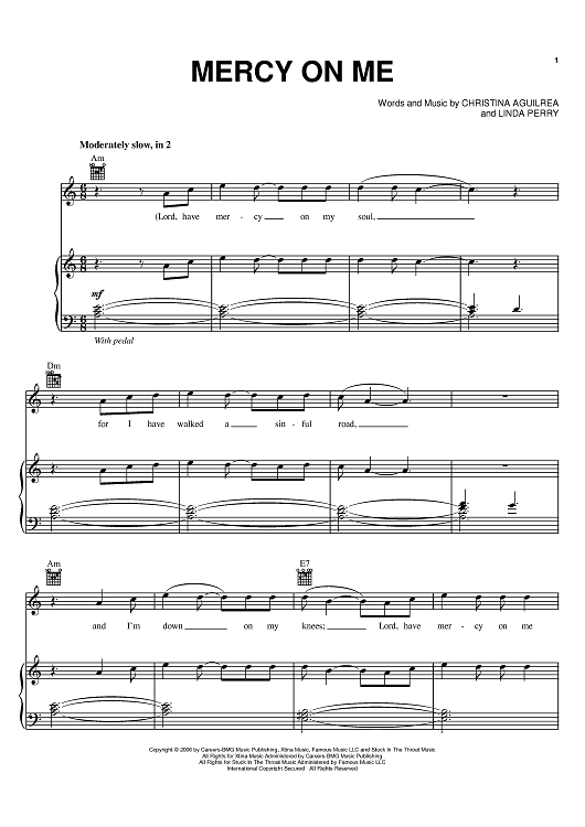 Digital Sheet Music for Mercy On Me by Linda Perry, Christina Aguilera scored for Piano/Vocal/Chords; id:401724