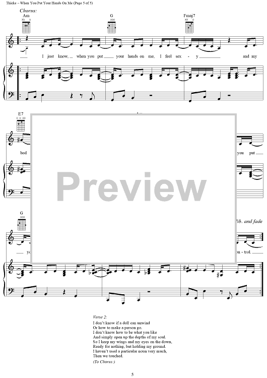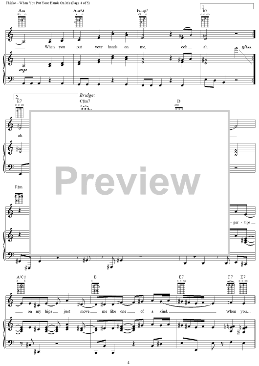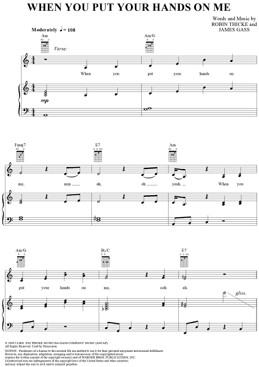Digital Sheet Music for When You Put Your Hands on Me by James Gass, Christina Aguilera, Robin Thicke scored for Piano/Vocal/Chords; id:201465