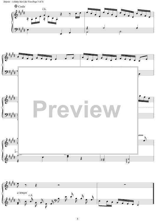 Digital Sheet Music for A Baby Just Like You by John Denver, Joe Henry, David Pearl scored for Piano Solo; id:391450