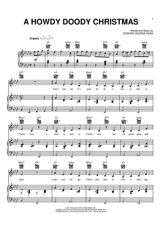 Digital Sheet Music for A Howdy Doody Christmas by Edward George Kean scored for Piano/Vocal/Chords; id:371942