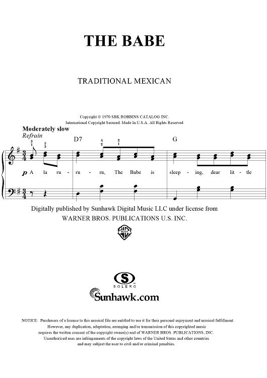 Digital Sheet Music for Babe, The by Traditional scored for Easy Piano/Vocal; id:262079
