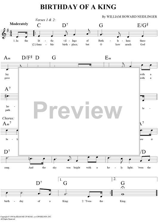 Digital Sheet Music for Birthday Of A King by William Harold Neidlinger scored for Lead Sheet; id:253249