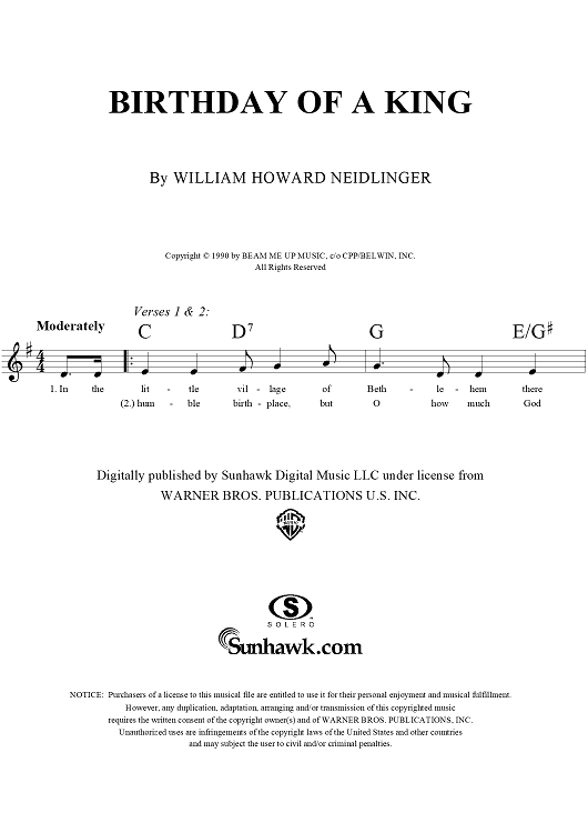 "Birthday Of A King" Sheet Music by William Harold Neidlinger
