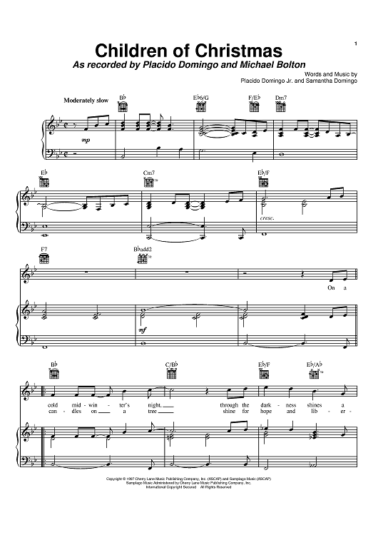 Digital Sheet Music for Children Of Christmas by Placido Domingo Jr., Samantha Domingo scored for Piano/Vocal/Chords; id:371713