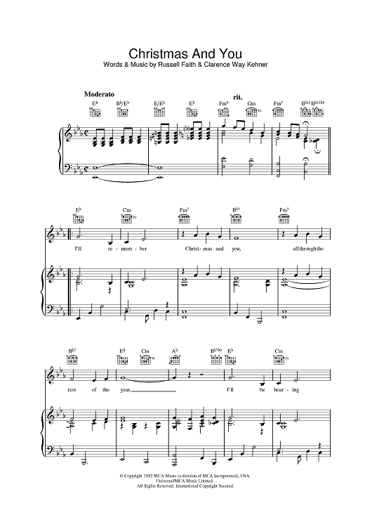 Digital Sheet Music for Christmas And You by Russell Faith, Clarence Way Kehner scored for Piano/Vocal/Chords; id:395009