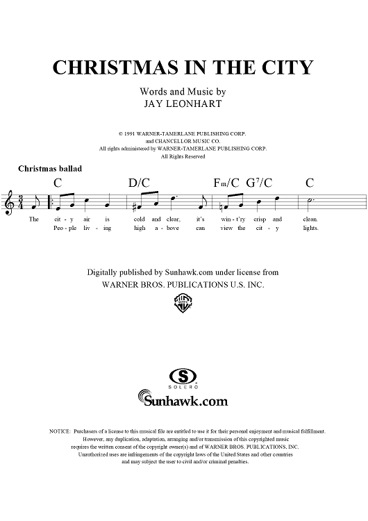 Digital Sheet Music for Christmas In The City by Jay Leonhart scored for Lead Sheet; id:201384