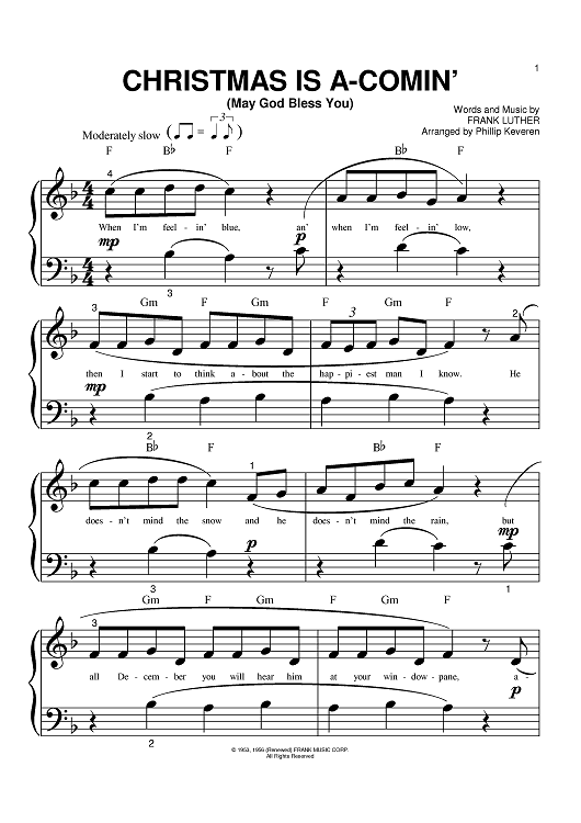 "Christmas Is A-Comin' (May God Bless You)" Sheet Music by Frank Luther