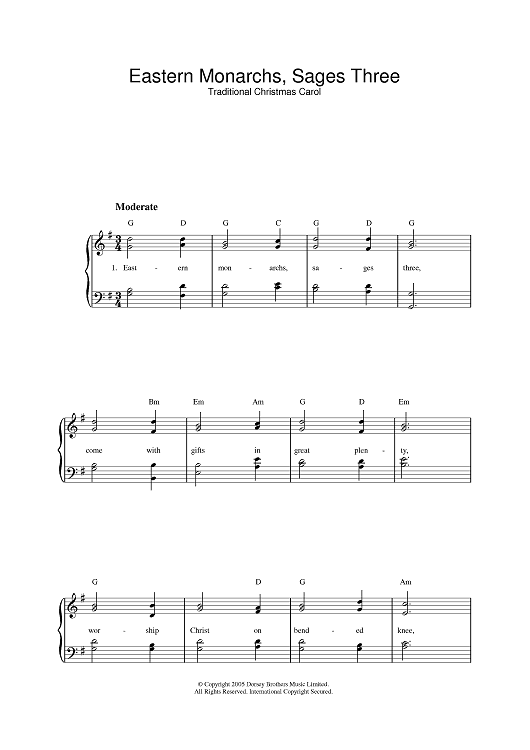"Eastern Monarchs, Sages Three" Sheet Music by