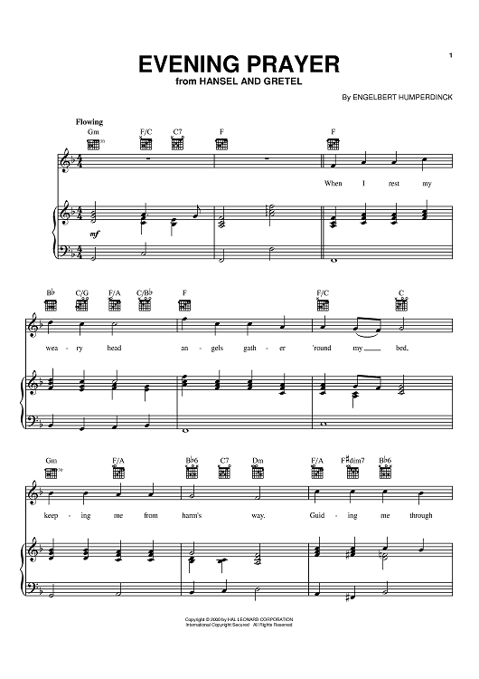 Digital Sheet Music for Evening Prayer by Engelbert Humperdinck scored for Piano/Vocal/Chords; id:368507