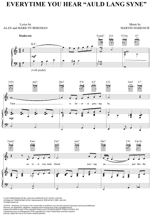 Digital Sheet Music for Everytime You Hear "Auld Lang Syne" by Marvin Hamlisch, Alan Bergman, Marilyn Bergman scored for Piano/Vocal/Chords; id:283949
