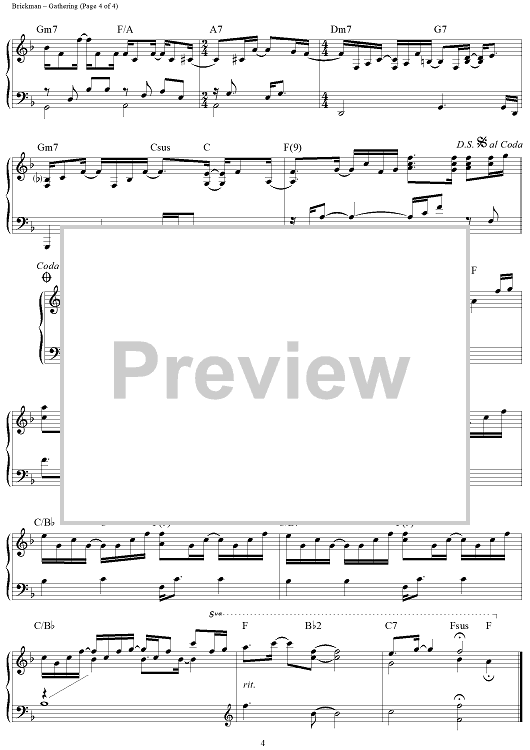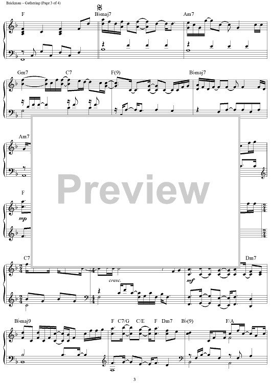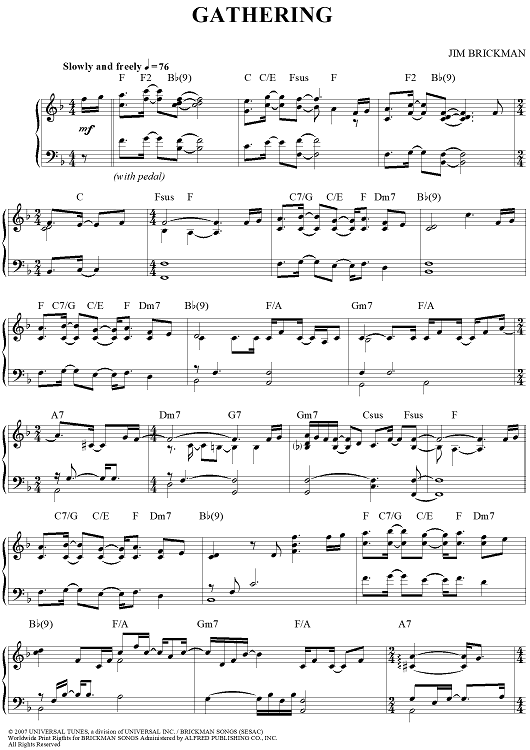 Digital Sheet Music for Gathering by Jim Brickman scored for Piano Solo; id:418101