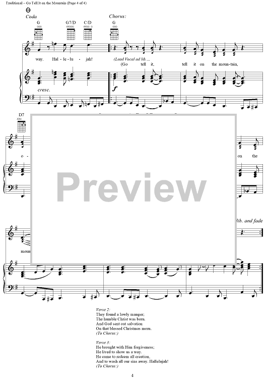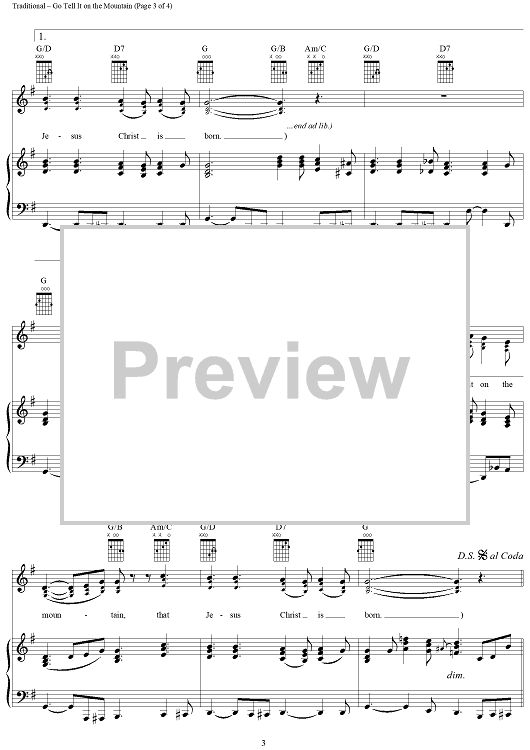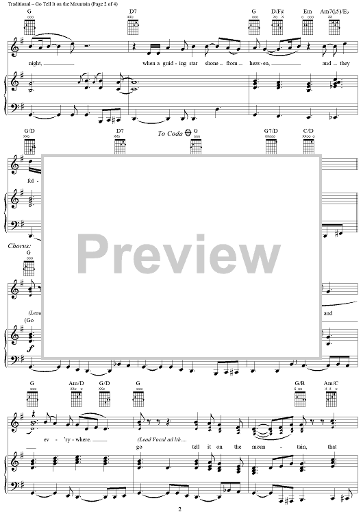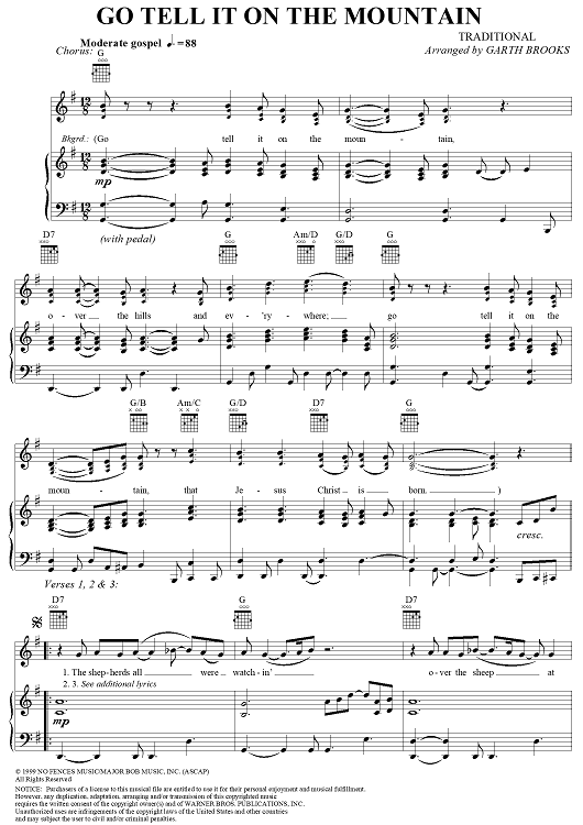 Digital Sheet Music for Go Tell It on the Mountain by Garth Brooks, Traditional scored for Piano/Vocal/Chords; id:293273