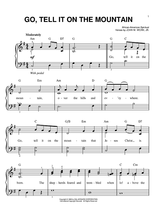 Digital Sheet Music for Go, Tell It On The Mountain by Jr., John W. Work scored for Easy Piano; id:375244