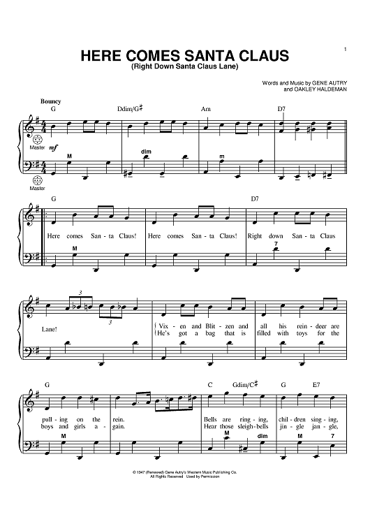 "Here Comes Santa Claus" Sheet Music by Gene Autry