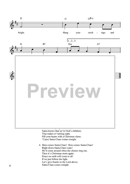 "Here Comes Santa Claus (Right Down Santa Claus Lane)" Sheet Music by The Carpenters