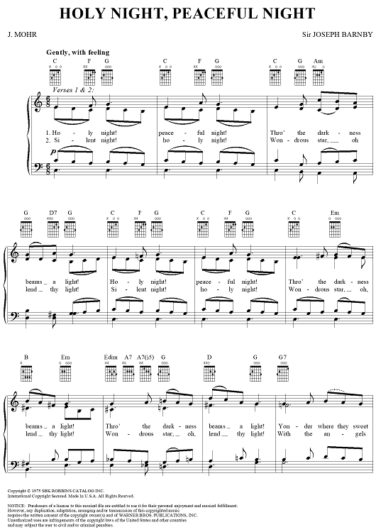 Digital Sheet Music for Holy Night, Peaceful Night by J. Mohr, Joseph Barnby scored for Piano/Vocal/Chords; id:276390