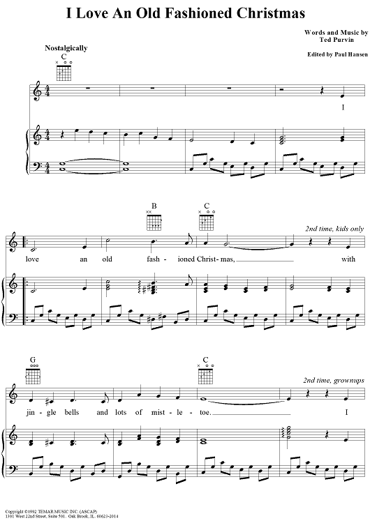 Digital Sheet Music for I Love An Old Fashioned Christmas by Ted Purvin, Bobby Bare, Grandma's Little Angels scored for Piano/Vocal/Chords; id:95997