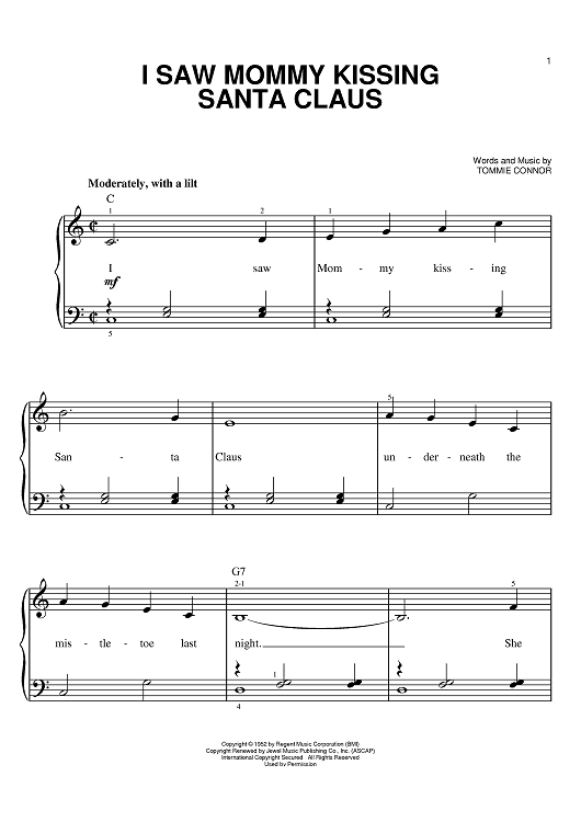 Digital Sheet Music for I Saw Mommy Kissing Santa Claus by Tommie Connor scored for Easy Piano; id:372179