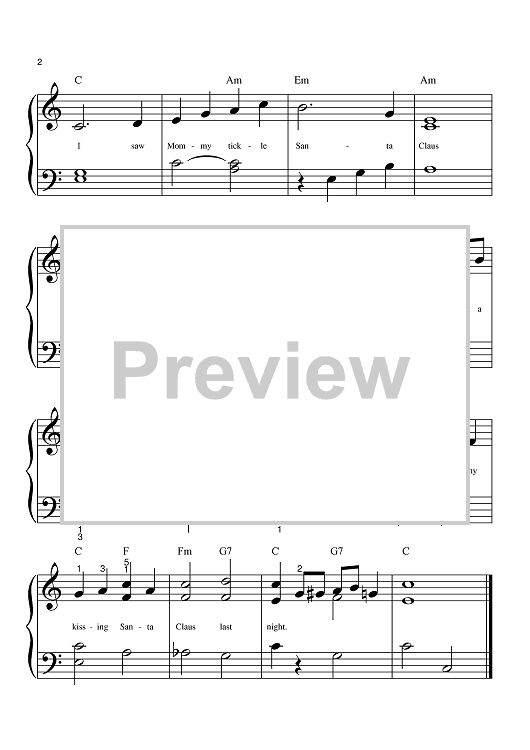 Digital Sheet Music for I Saw Mommy Kissing Santa Claus by Tommie Connor scored for Big Note Piano; id:384099