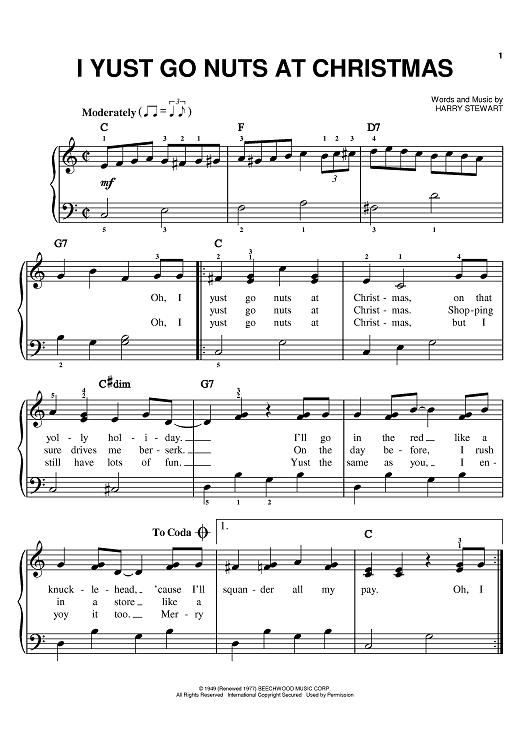 "I Yust Go Nuts At Christmas" Sheet Music by Harry Stewart