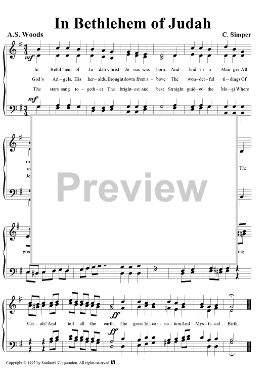 Digital Sheet Music for In Bethlehem of Judah by C. Simper, A. S. Woods scored for Four-part Mixed Chorus; id:94786