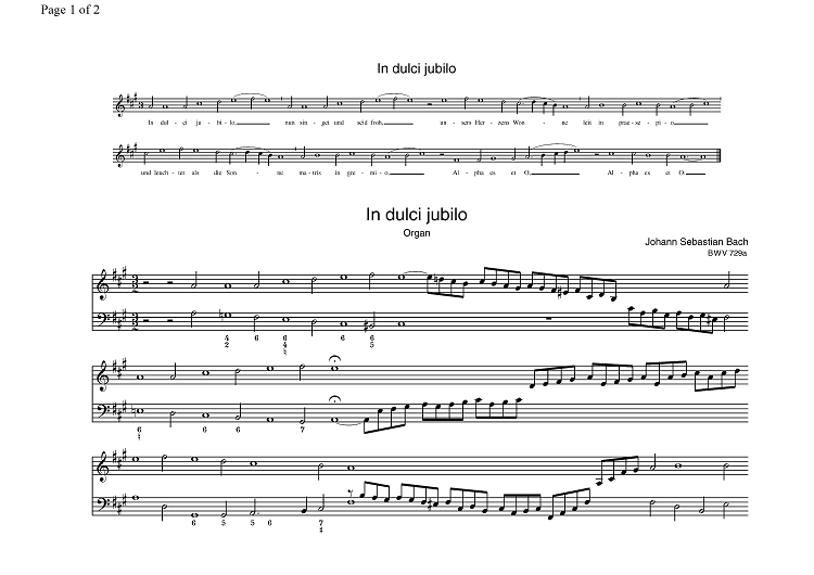 Digital Sheet Music for In dulci jubilo BWV 729a by Johann Sebastian Bach scored for Organ Solo; id:330213
