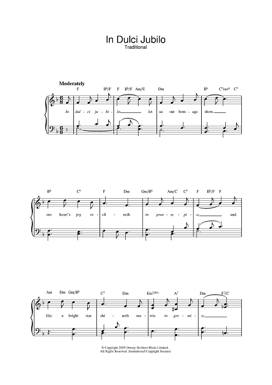 Digital Sheet Music for In Dulci Jubilo by R.L. Pearsall scored for Easy Piano; id:385488