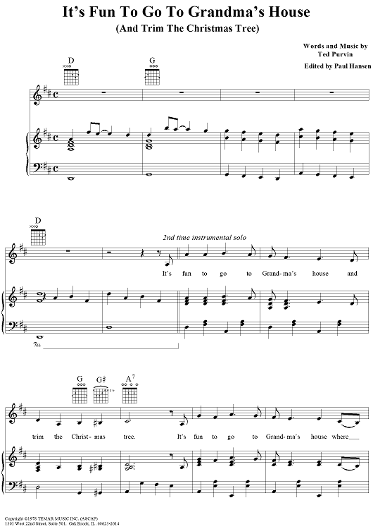 Digital Sheet Music for It's Fun To Go To Grandma's House (And Trim The Christmas Tree) by Ted Purvin, Bobby Bare, Grandma's Little Angels scored for Piano/Vocal/Chords; id:95951
