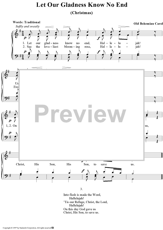 "Let Our Gladness Know No End" Sheet Music by Traditional