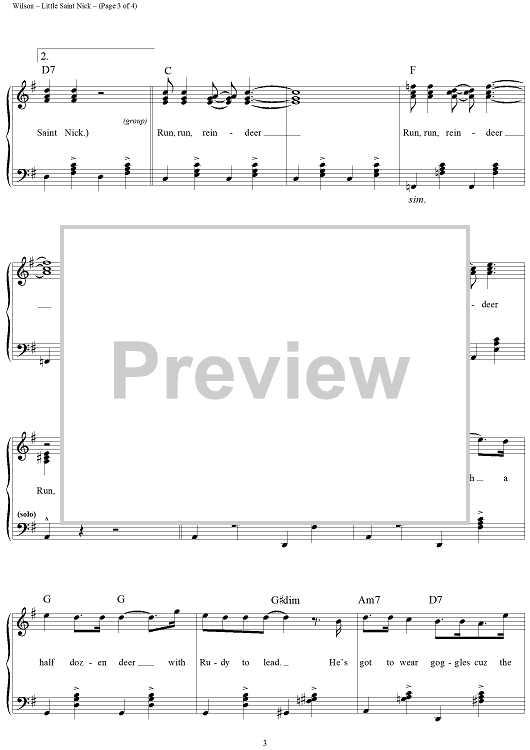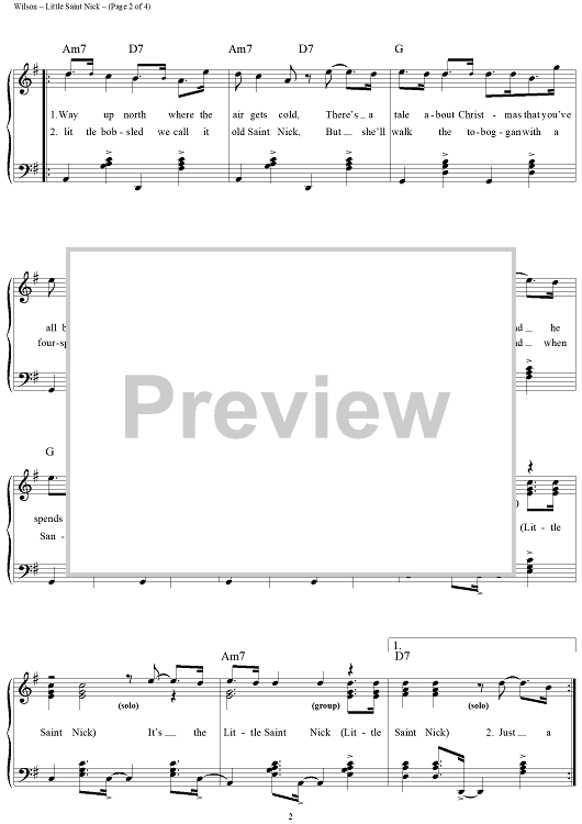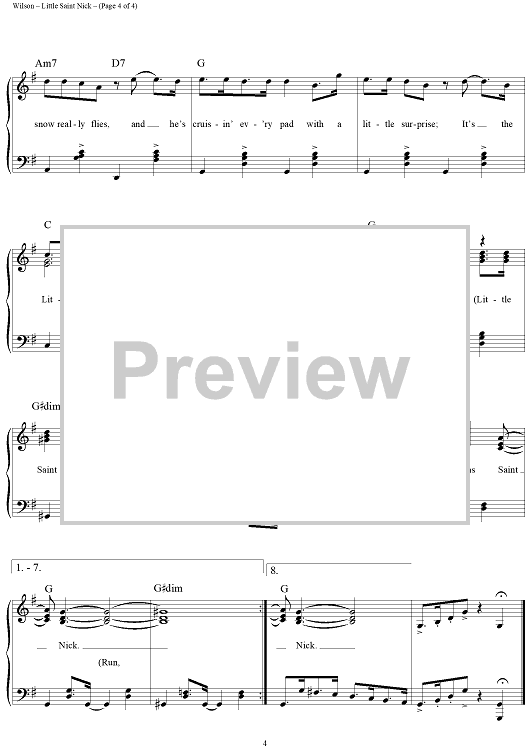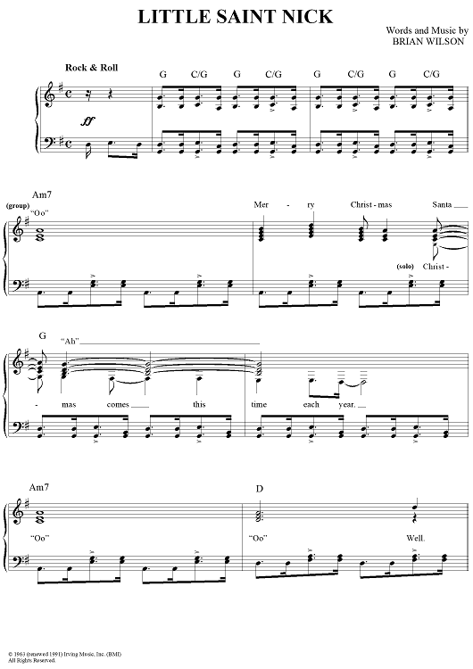 Digital Sheet Music for Little Saint Nick by Brian Wilson, The Beach Boys scored for Piano/Vocal/Chords; id:95221